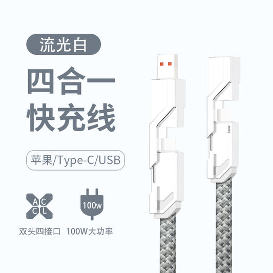 The new 100W four-in-one fast charging data cable is suitable for Type-C Huawei PD apple one-to-four charging cable batch